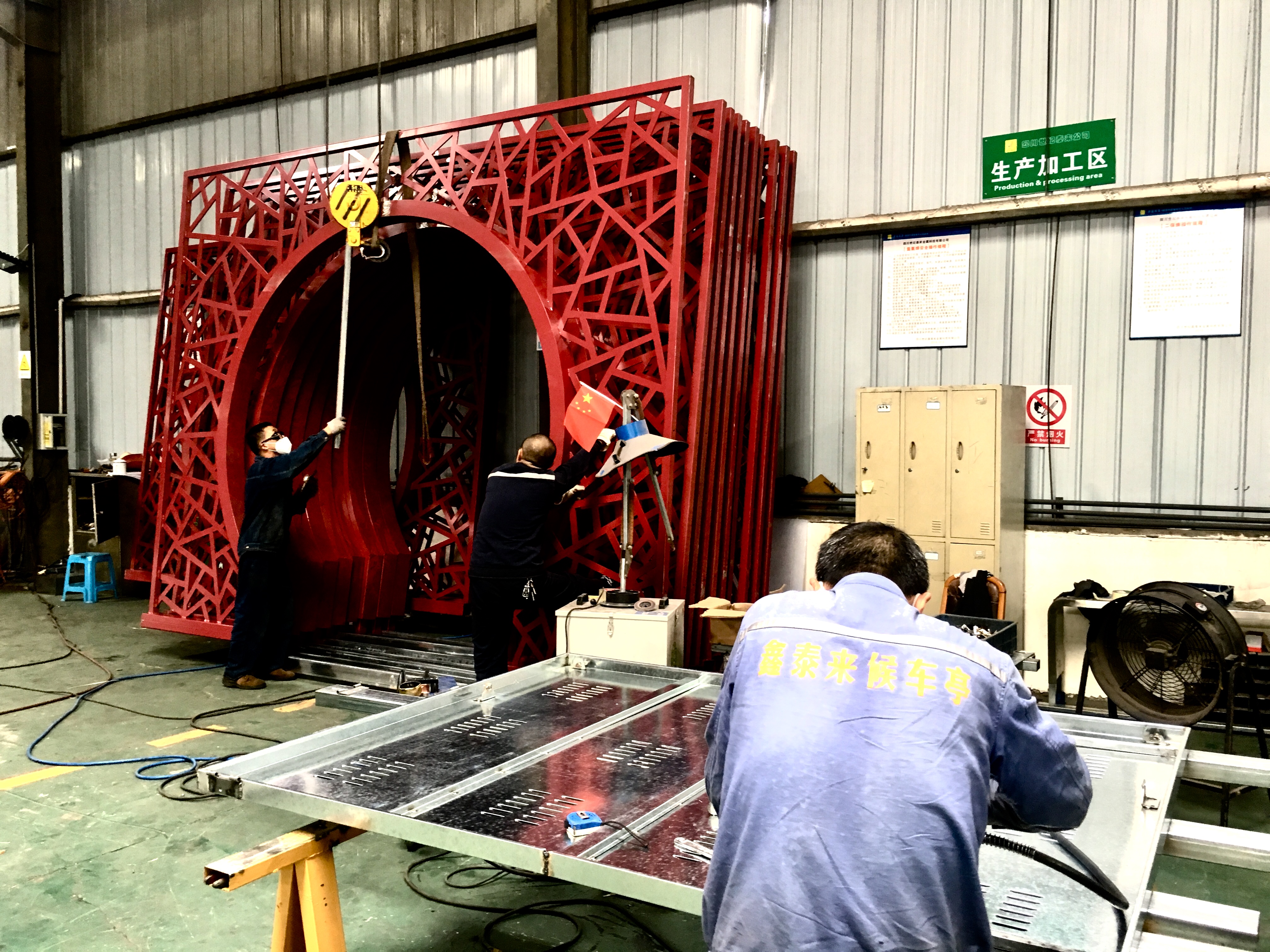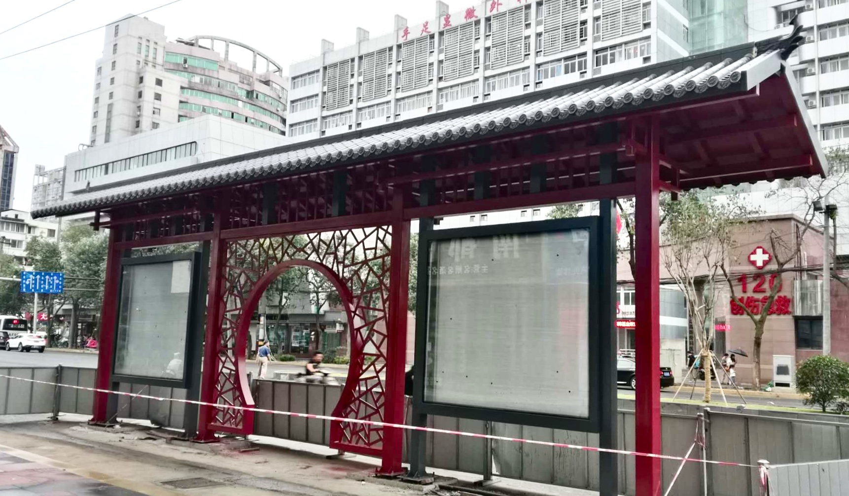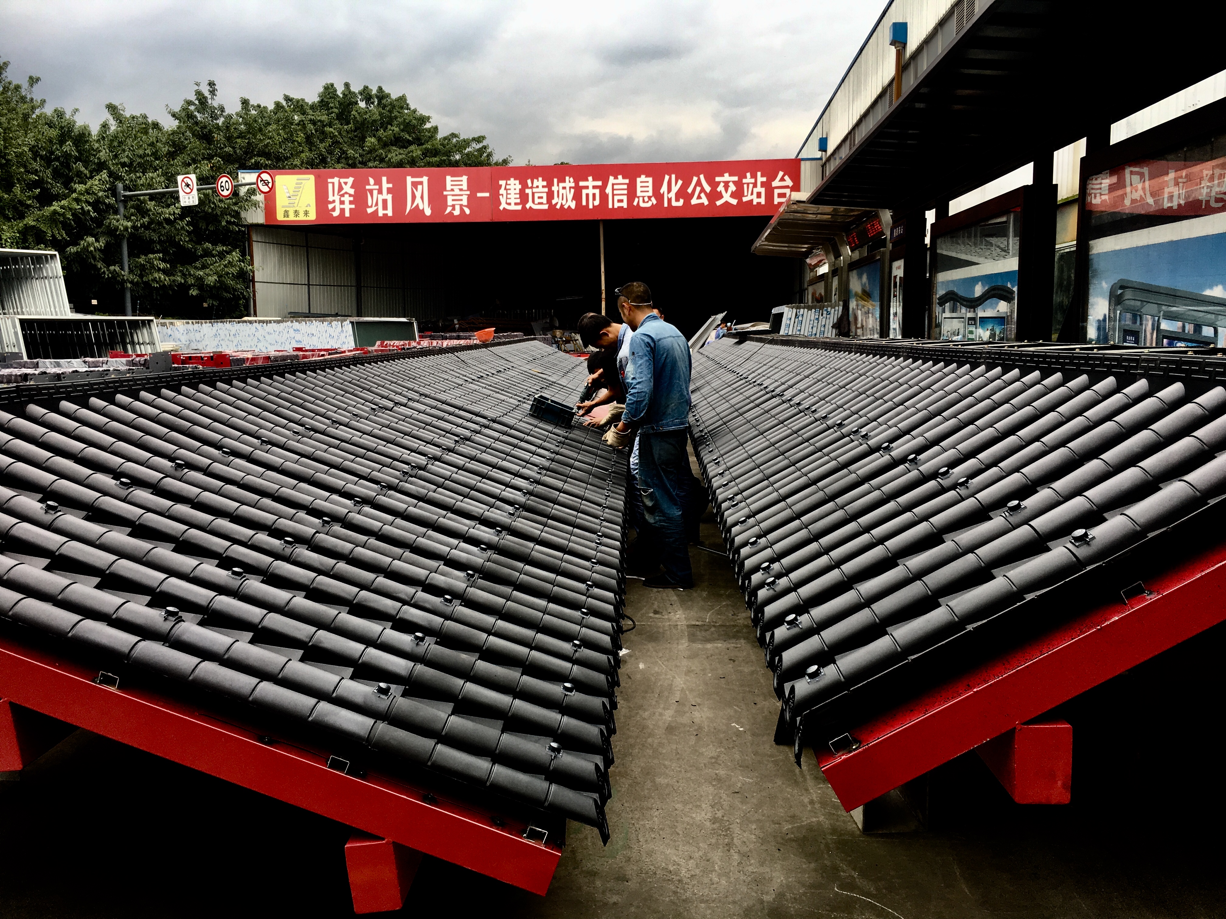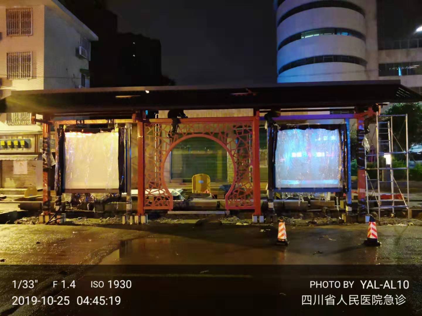 成都市一環(huán)道路綜合整治工程進(jìn)行中,因現(xiàn)場車流量巨大等諸多不利因素,導(dǎo)致我司公交站臺的安裝工作全部在夜間施工完成。高效率的人力計劃和安排布署,在工程部精兵強(qiáng)將通力配合下,持續(xù)每夜兩座的進(jìn)展速度,一座座高大的仿古公交站臺拔地而起,讓早起的當(dāng)?shù)厥忻耋@訝不已 ,紛紛贊嘆它的壯觀和神速。