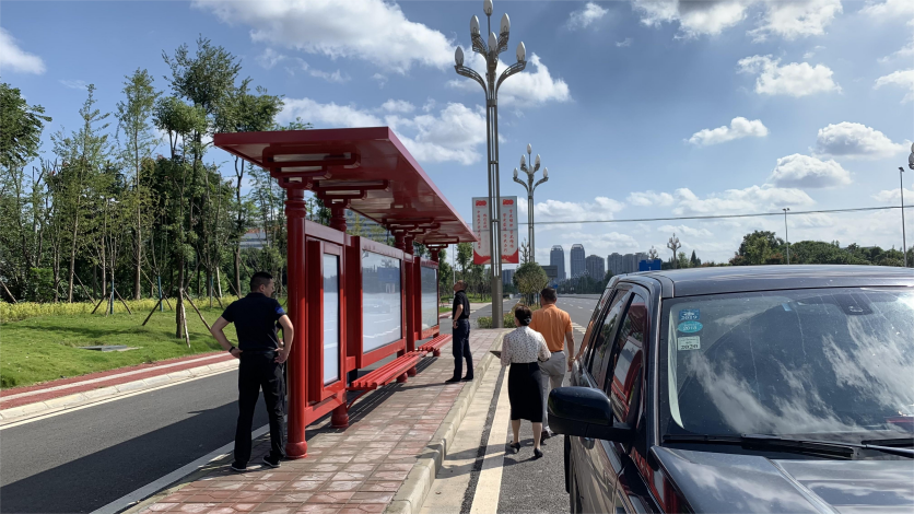 古時眉州因文豪蘇軾聞名天下,與彭山接鄰的太和大道上,表面古色中國紅的S80和S120公交站臺修建完成