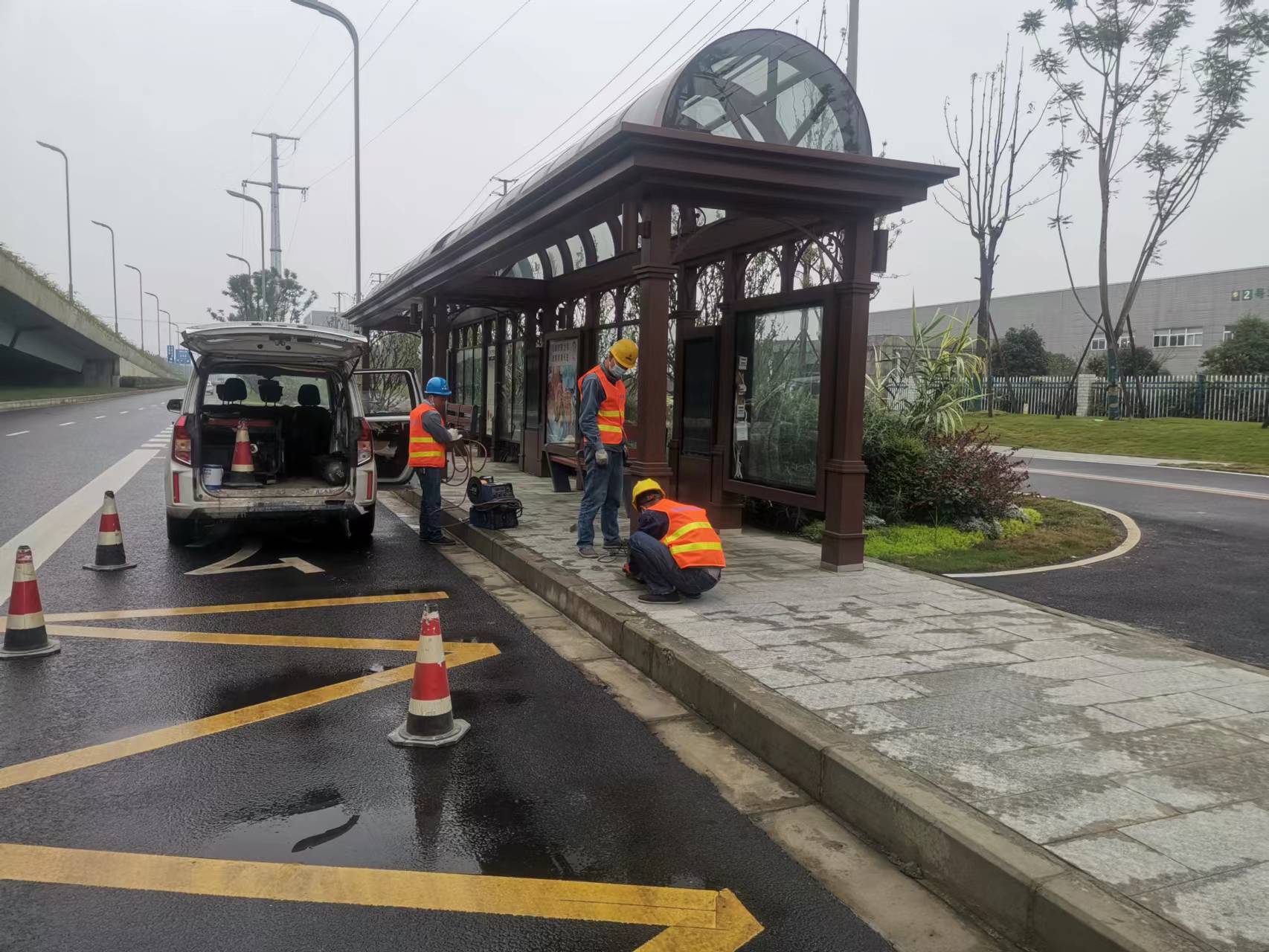 【鑫泰來候車亭】2022年的重點(diǎn)項(xiàng)目--成都彭州三環(huán)路公交站臺(tái),在全體員工歷經(jīng)4個(gè)月的努力下全線完成,順利通車。