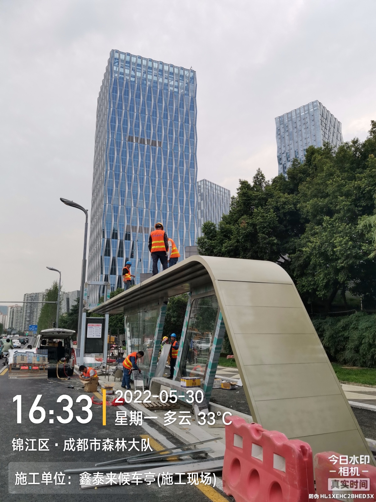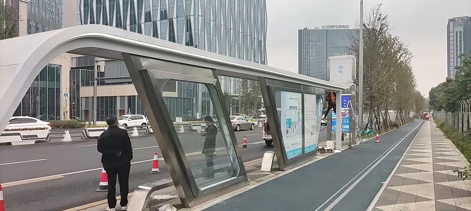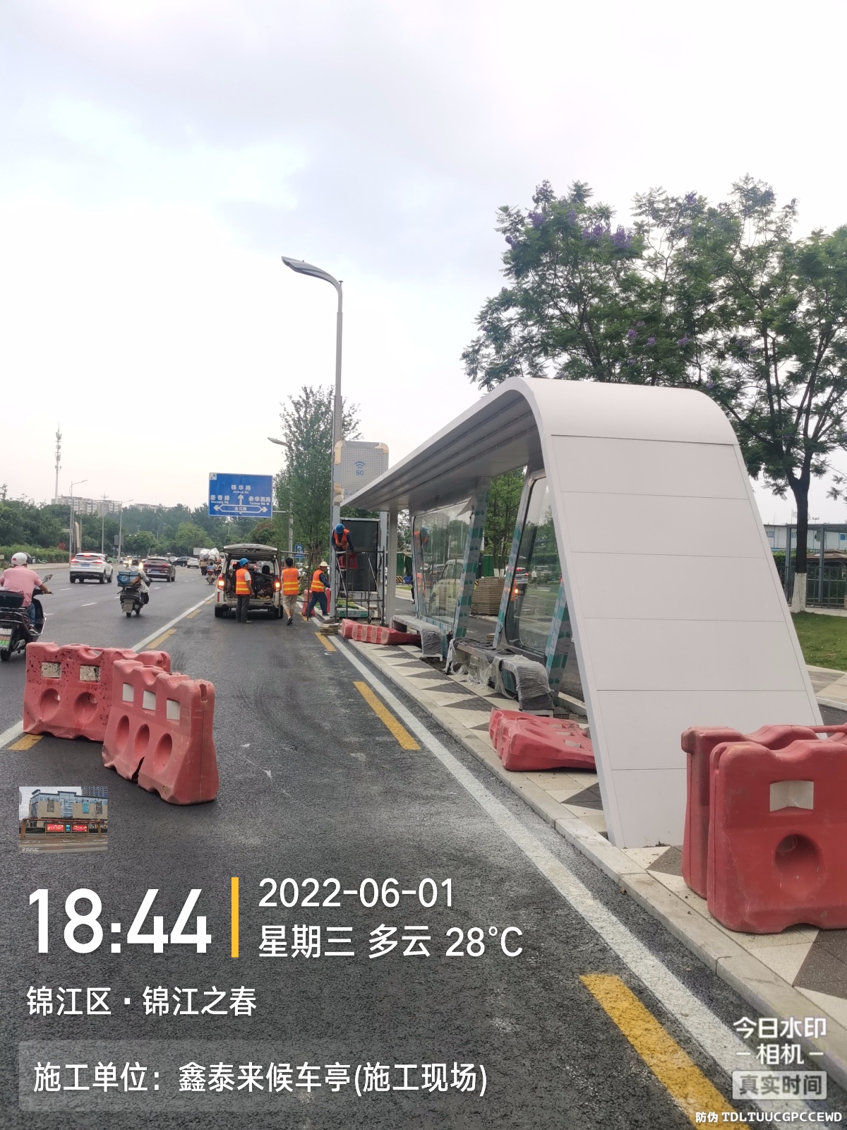 【鑫泰來候車亭】在成都市區(qū)完成的又一力作:成都市錦江大道智慧公交站棚(5G站牌)完工交付使用