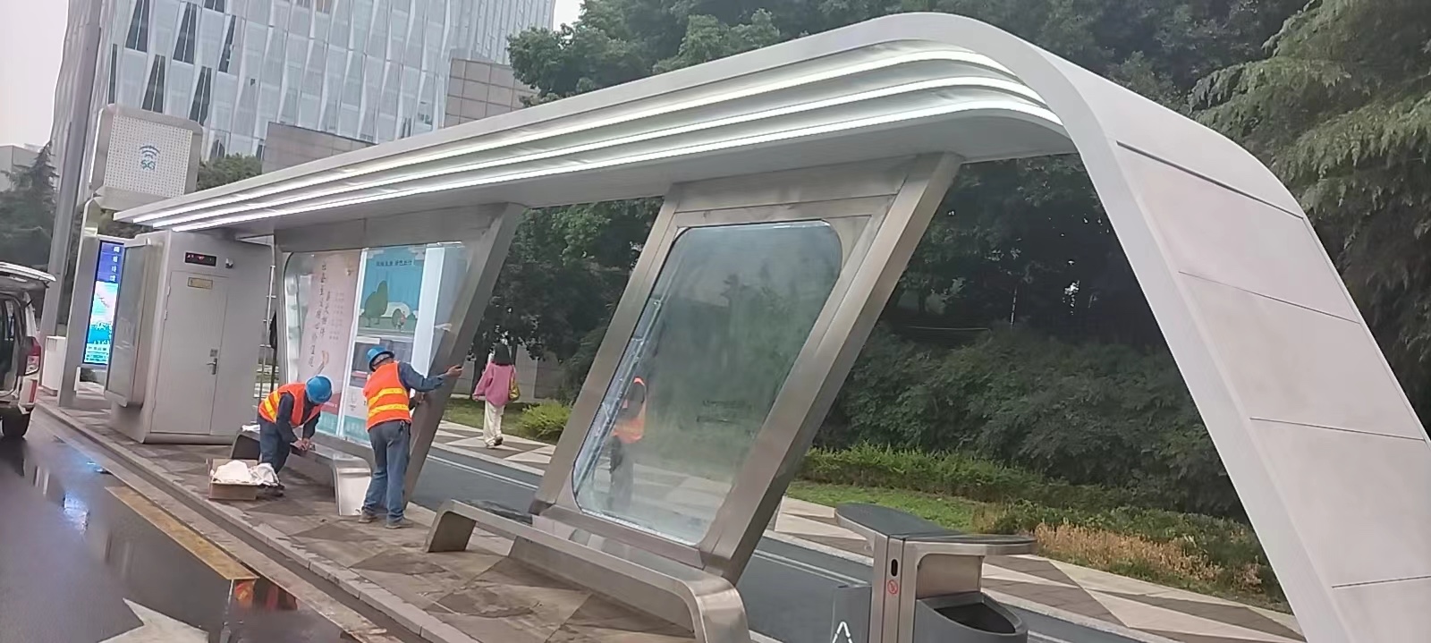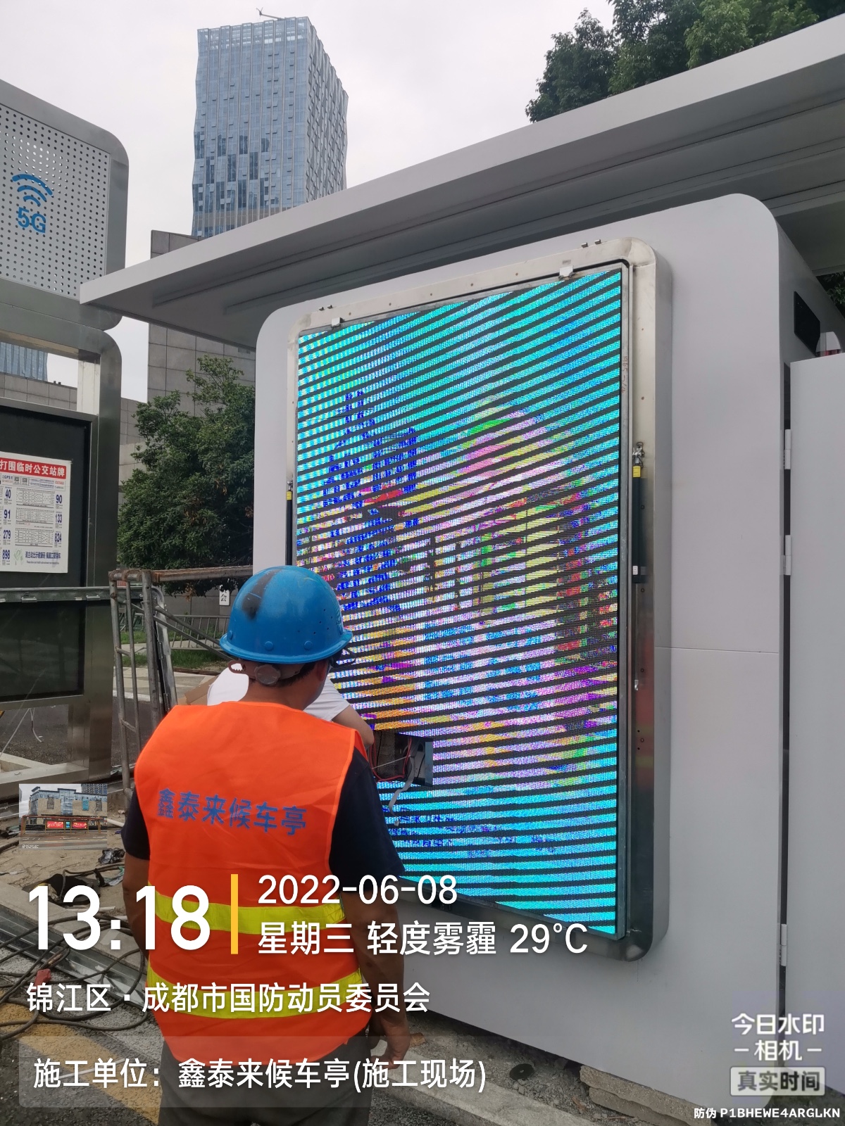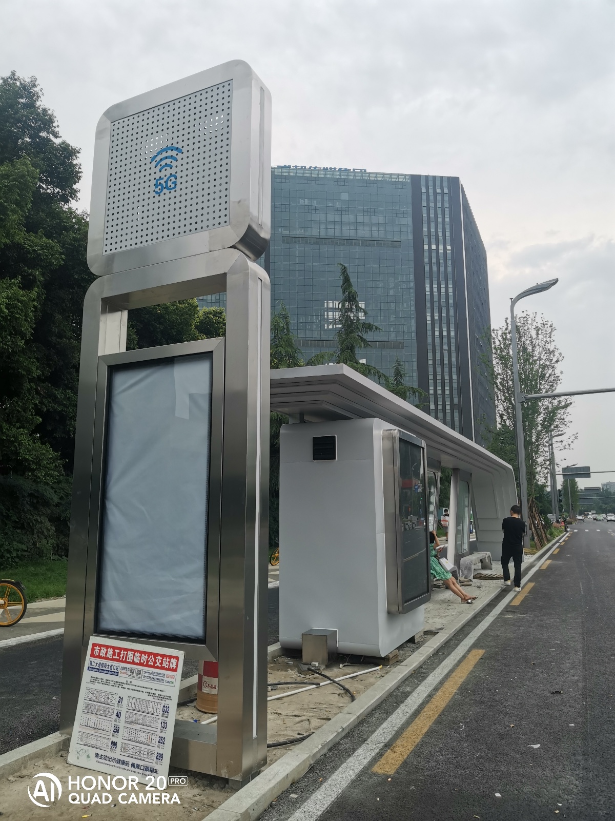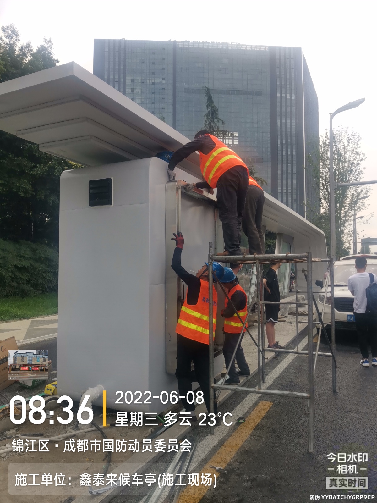 【鑫泰來候車亭】在成都市區(qū)完成的又一力作:成都市錦江大道智慧公交站棚(5G站牌)完工交付使用