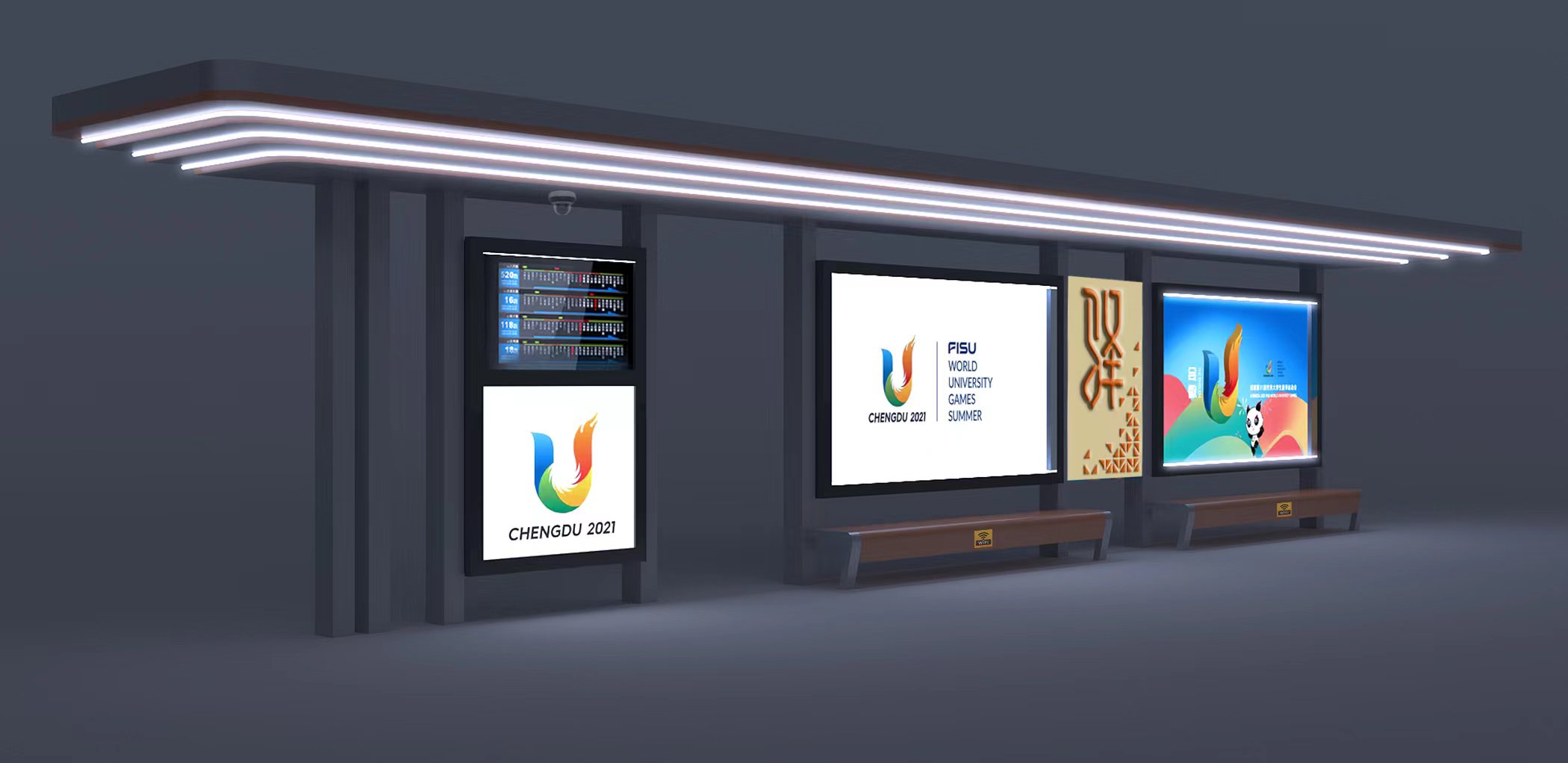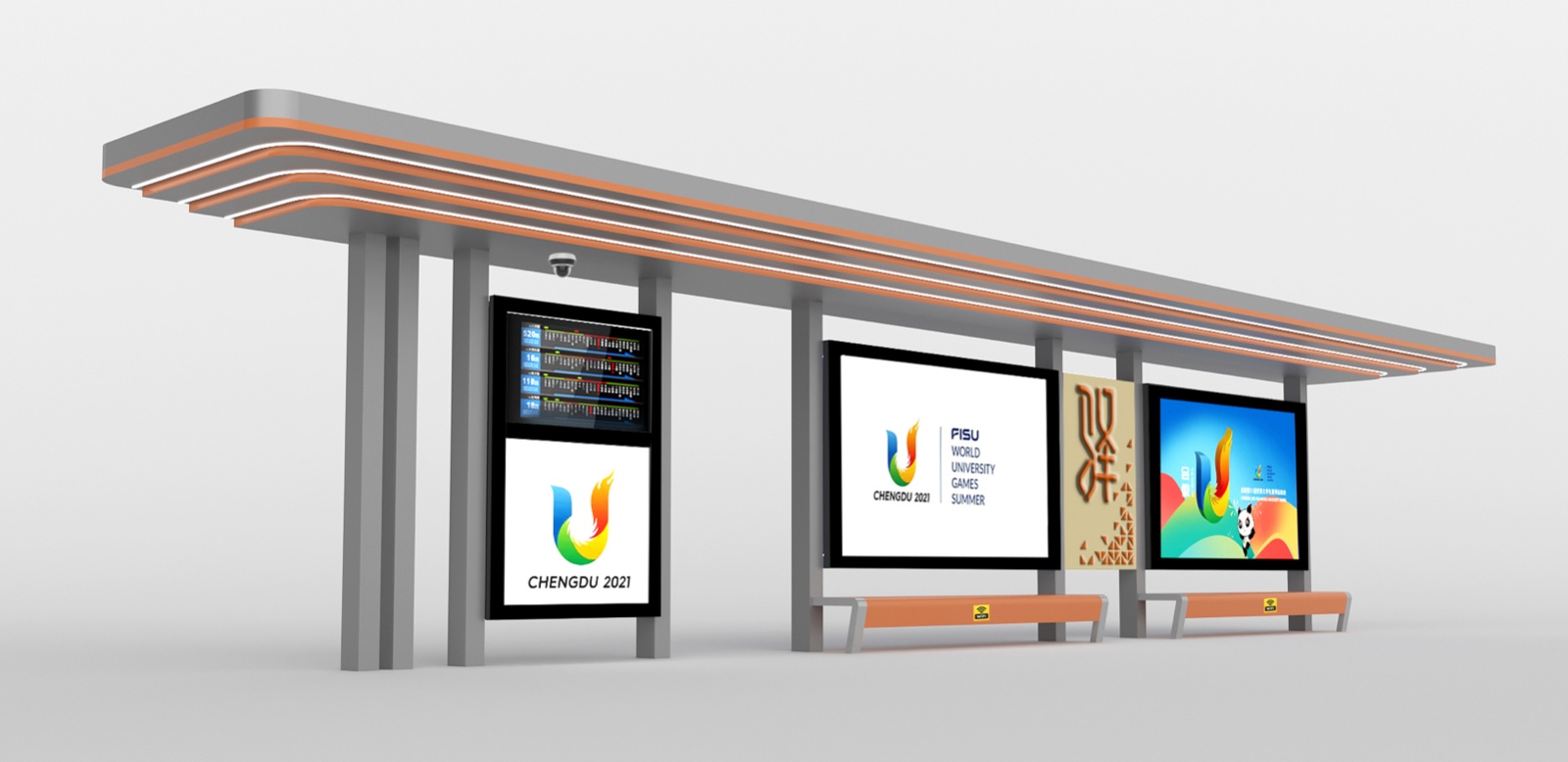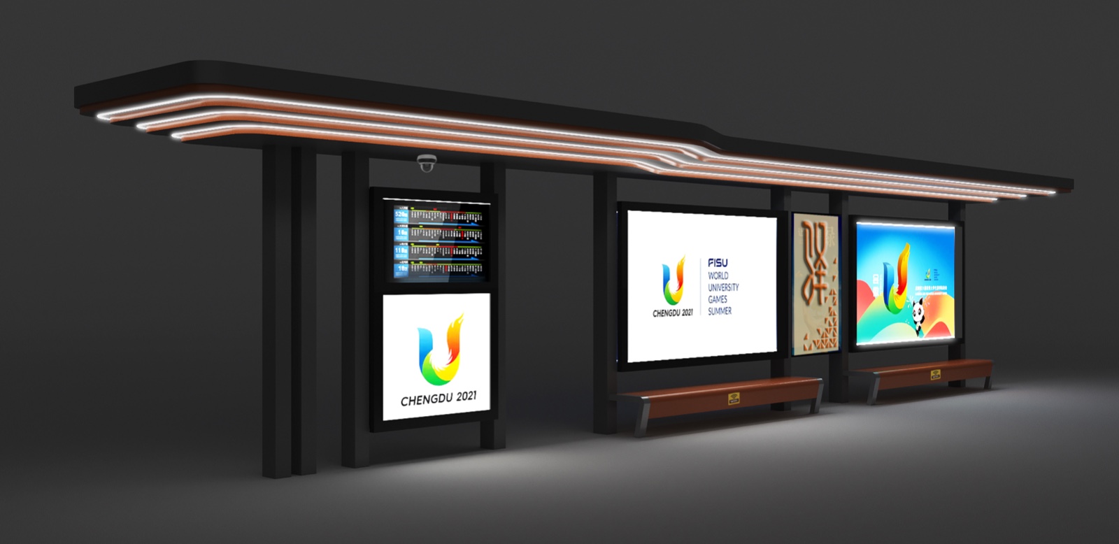 由我公司承建的四川蒲江朝陽大道、鶴山北路城市道路空間一體化改造項(xiàng)目--智慧公交站臺工程圓滿完工,造型呈一字形公交站亭,頂棚融入LED氛圍燈照明、每座站臺實(shí)現(xiàn)安全監(jiān)控、電子報(bào)站、座凳充電、地域特色LOGO。