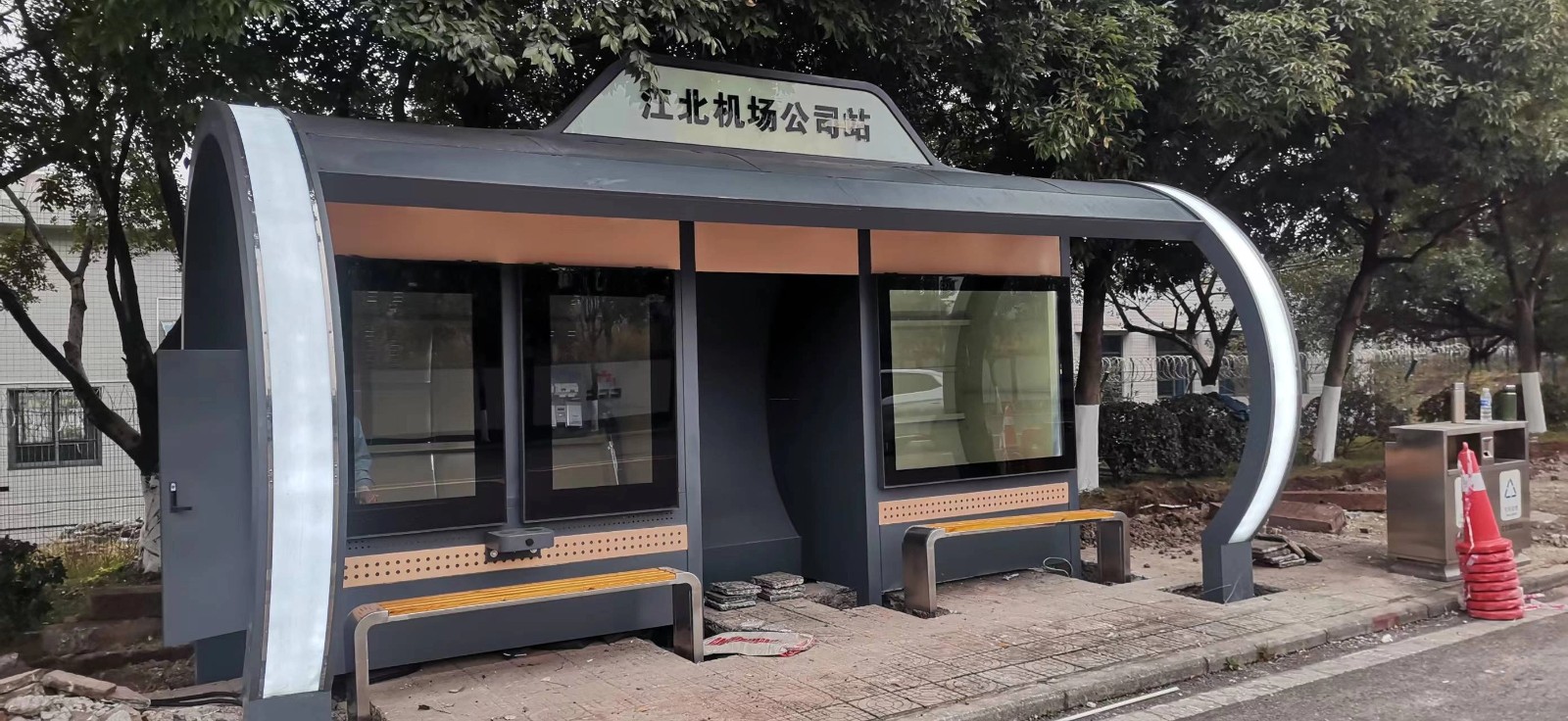【鑫泰來(lái)候車亭】江北機(jī)場(chǎng)公交站臺(tái)二期工程完工
