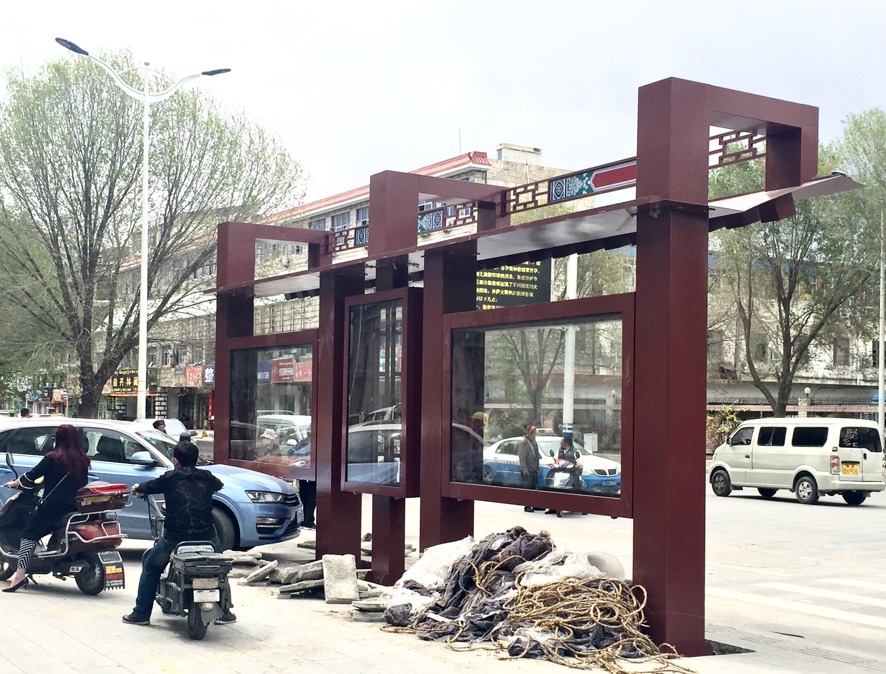 由我公司生產(chǎn)的拉薩市布達拉宮主街道的藏式公交站亭30座,在安裝工人克服呼吸缺氧和高原反應種種困難的條件下完成并移交投入使用。