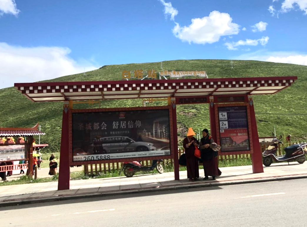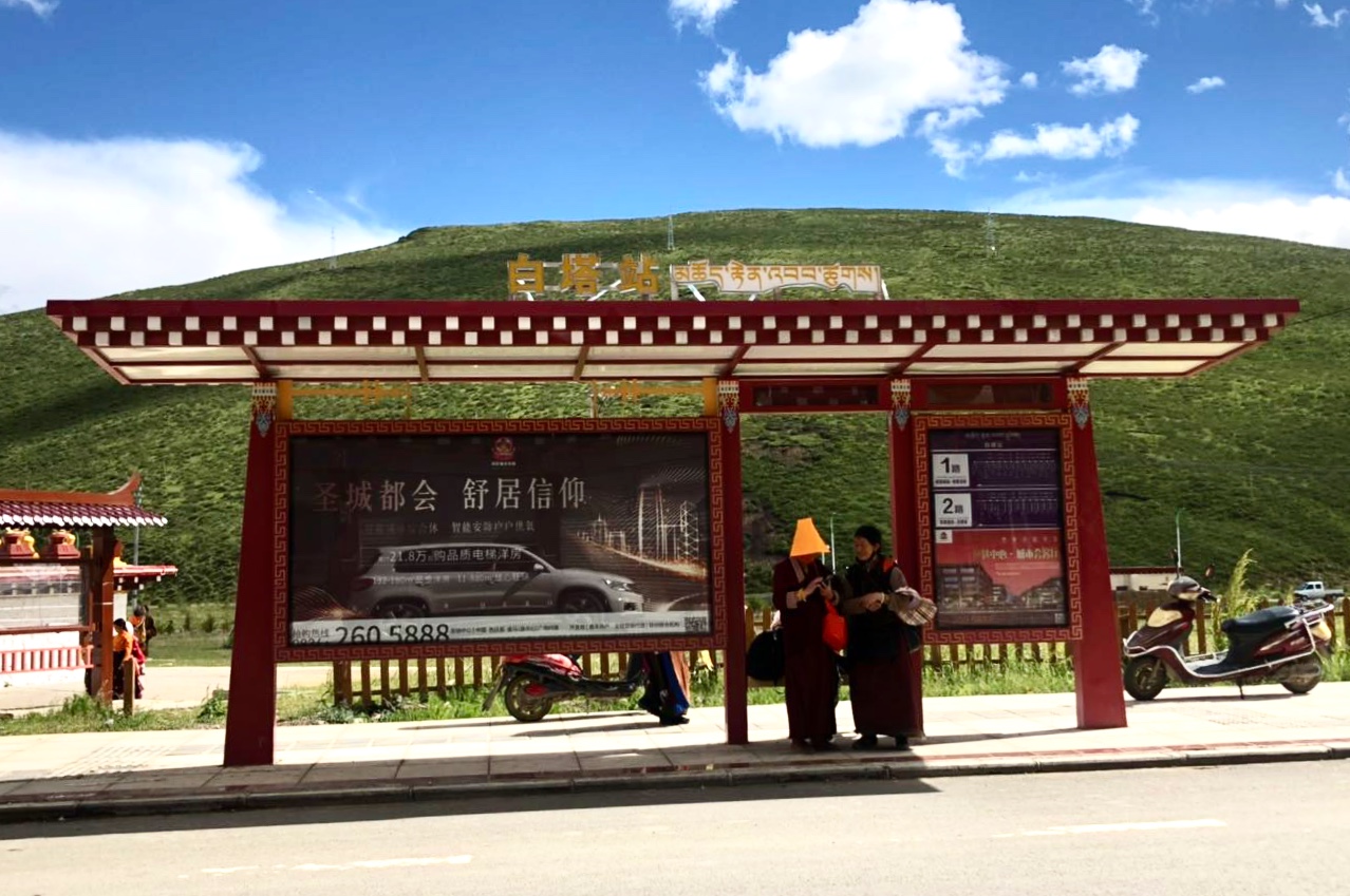 由我公司中標(biāo)承建的四川省甘孜州色達(dá)縣藏式公交站亭新建項(xiàng)目,在離色達(dá)佛學(xué)院不遠(yuǎn)處的街道和景區(qū)建成。