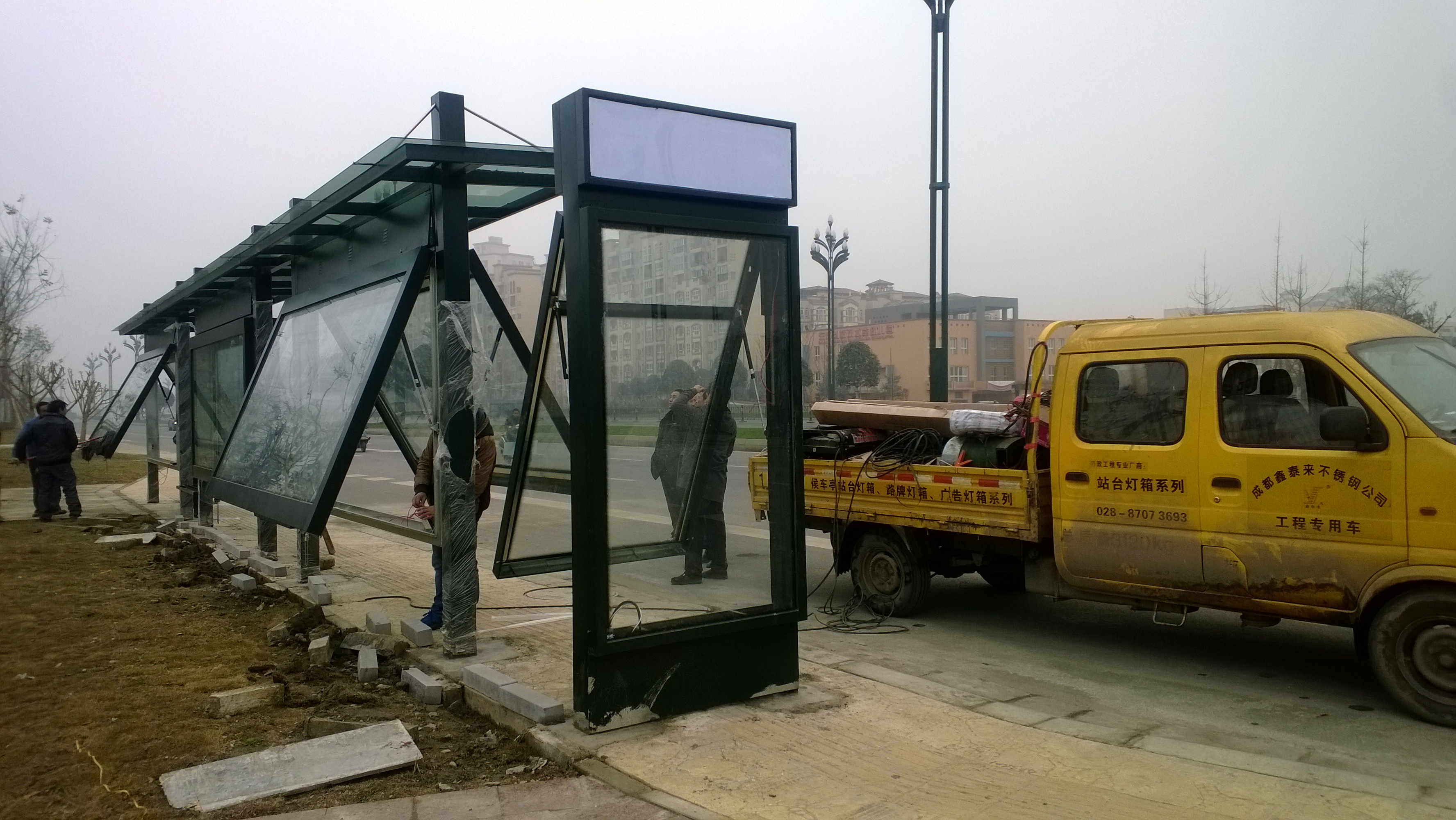 由我公司中標(biāo)承建的成都市新都區(qū)金屬烤漆公交站臺(tái)蓉新大道北段和南段,已經(jīng)修建完成交付使用。