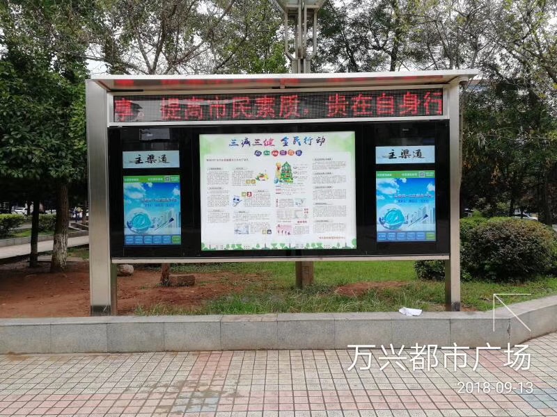 今年8月,在資陽市各大廣場上,新建了24個顏值頗高的文明城市便民服務(wù)宣傳欄,告別傳統(tǒng)的不銹鋼海報式宣傳欄。